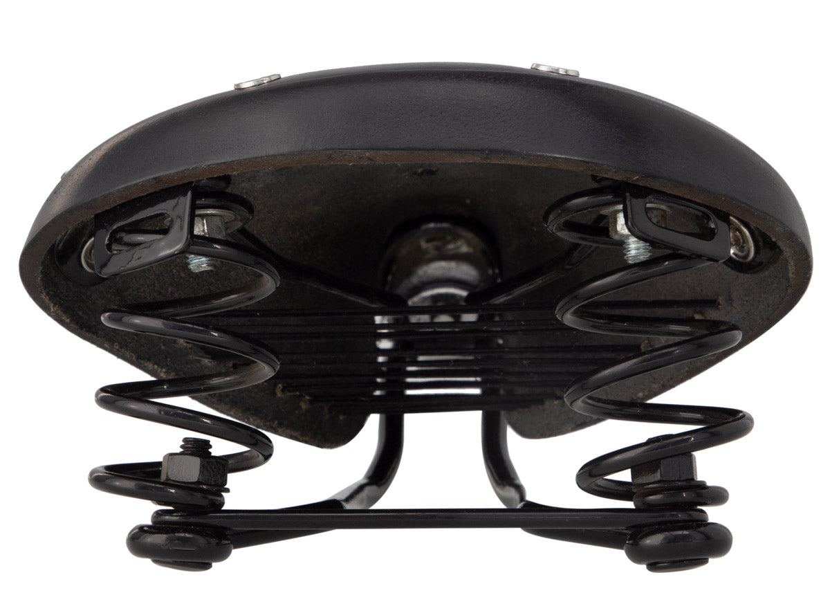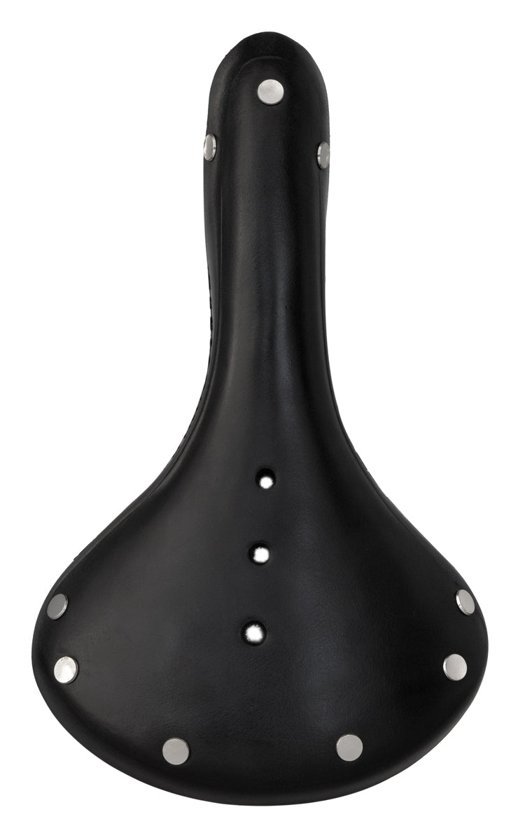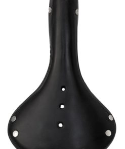 “Walter G.” is made of robust buffalo leather and covered in studs. His narrow shape means that you can cycle dynamically without having to sacrifice any comfort, the two steel springs under the saddle provide extra comfort when cycling. The two eyelets on the back of the saddle mean you can easily attach a stylish saddle bag with your tools when you’re on the go.
